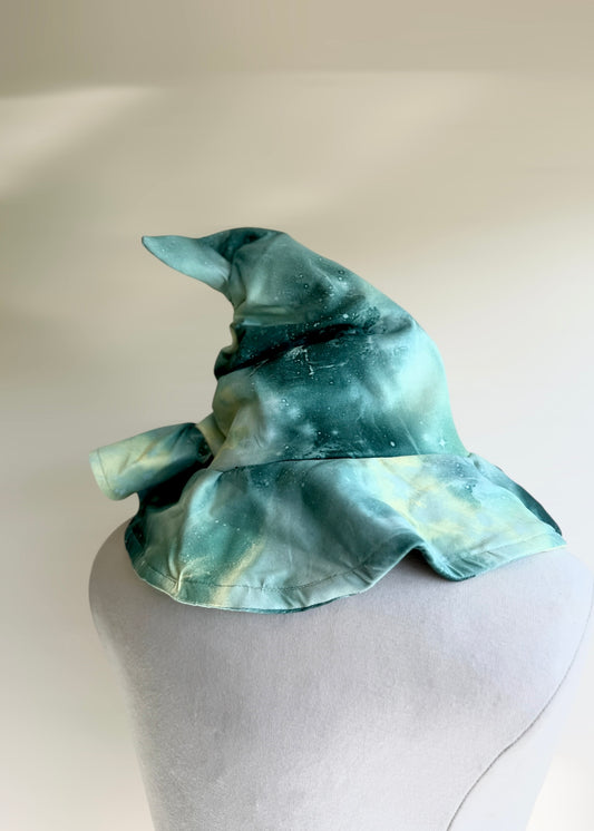 Slouchy Witch Hat | Astrology Halloween Wizard Costume | Fairy Pixie Cottagecore Woodland Elven Cosplay | Green Astrology Nebula Galaxy